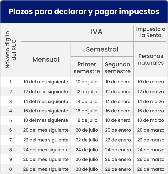 Y para que tengas mapeadas las fechas exactas en las cuales debes realizar tus declaraciones de IVA, te compartimos la siguiente tabla: